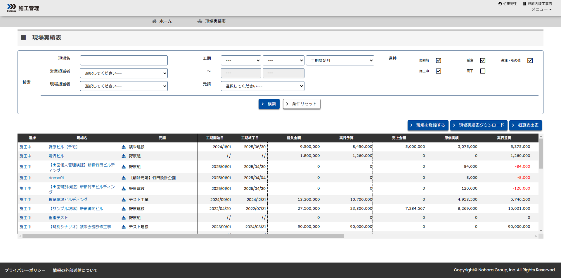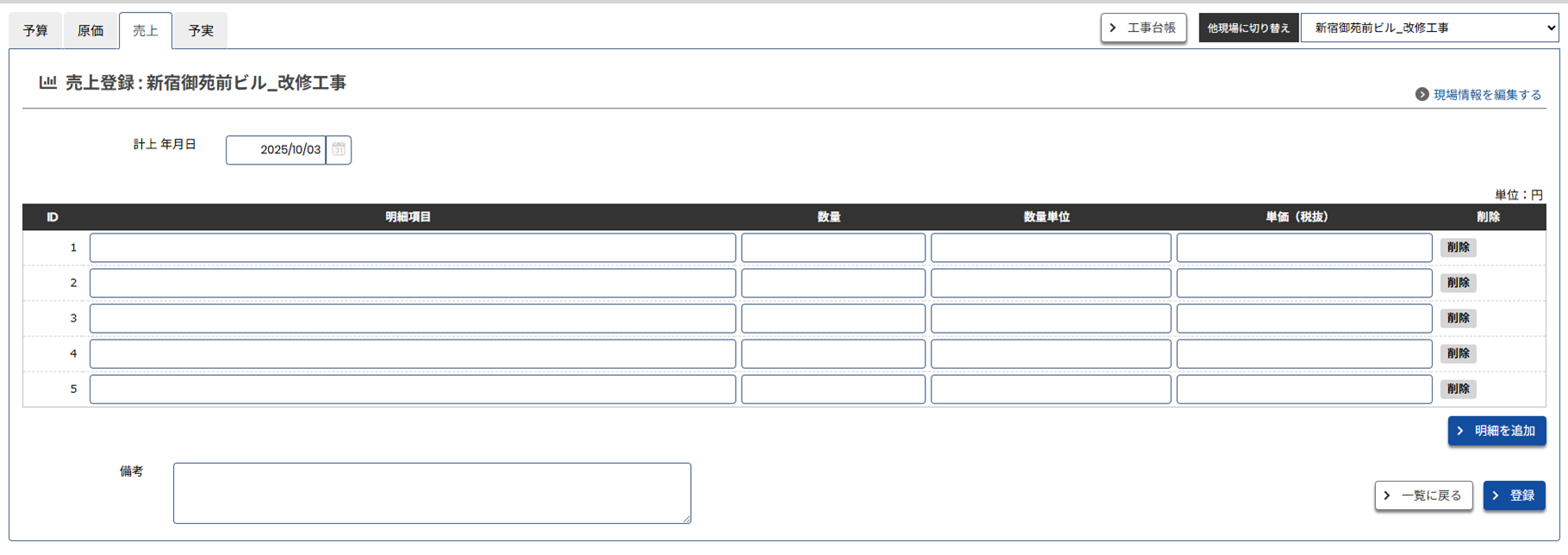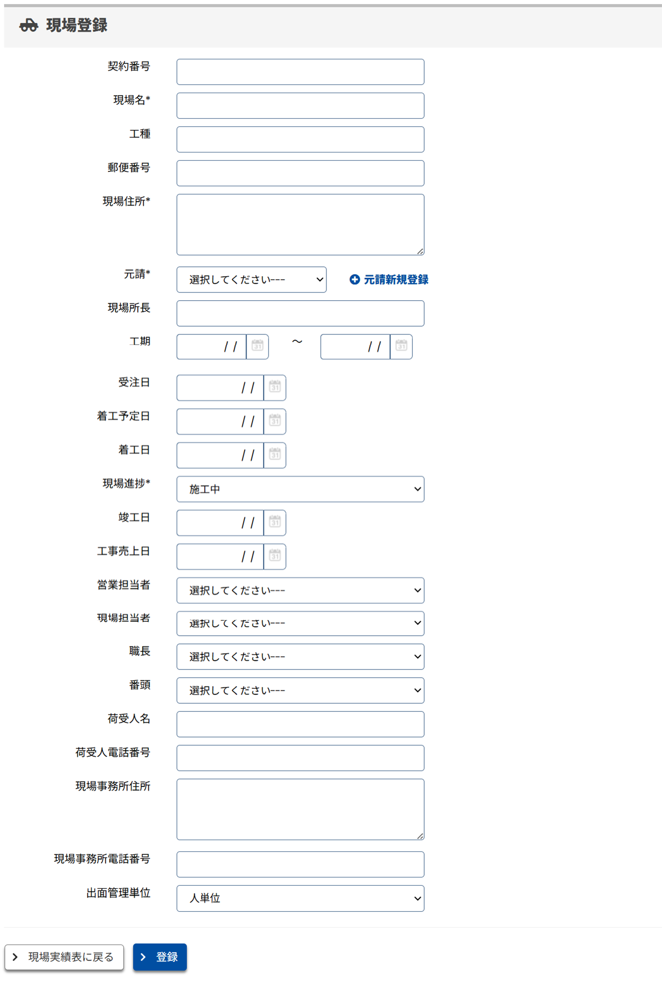 現場の予実管理に特化したシンプルな入力フォームで、誰でも簡単に工事台帳を作成できます。